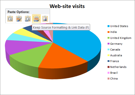 - Nhấn vào vị trí bạn muốn dán biểu đồ vào trong Word và PowerPoint, nhấn Ctrl + V. Thay cho Ctrl + V, bạn có thể nhấp phải ở bất kỳ đâu trong tệp và công cụ Paste Options hiện ra.