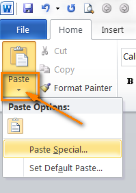 - Bạn sẽ thấy nút Paste Special… hiển thị như trong hình. Nhấp vào nó, hộp thoại Paste Specialxuất hiện. Bạn sẽ thấy rất nhiều kiểu định dạng hình ảnh bao gồm Bitmap, GIF, PNG và JPEG.