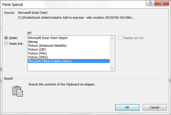 Trong Office 2007, 2010 và 2013, bạn có thể sao chép biểu đồ Excel dưới định dạng hình ảnh. Trong trường hợp này, bạn sẽ có một hình ảnh đơn thuần và không thể cập nhật nó. Ví dụ, xuất một biểu đồ trong Excel sang Word 2010 dưới định dạng hình ảnh.